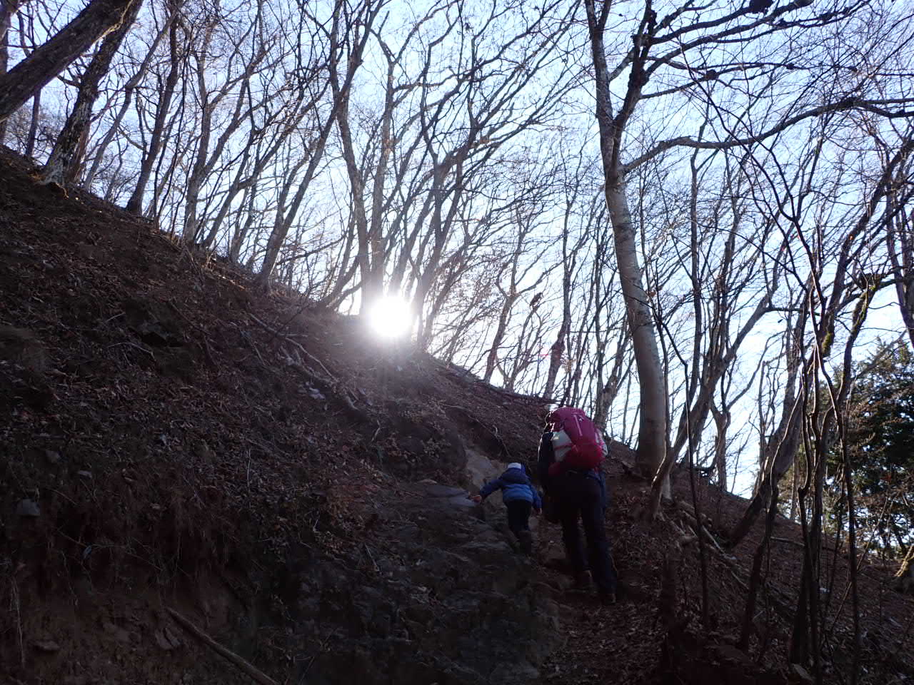 貴重な人工樹林帯を抜け、気持ちの良い天然の落葉樹林のなかを登り切り、そしていい勉強になりました!