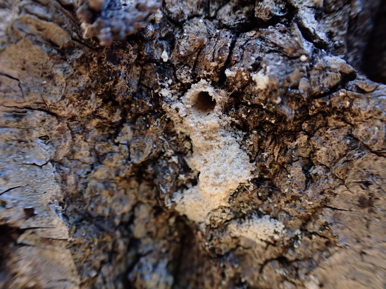 根元にはたくさんの穴が開けられた際に出されたカスが蓄積してます。