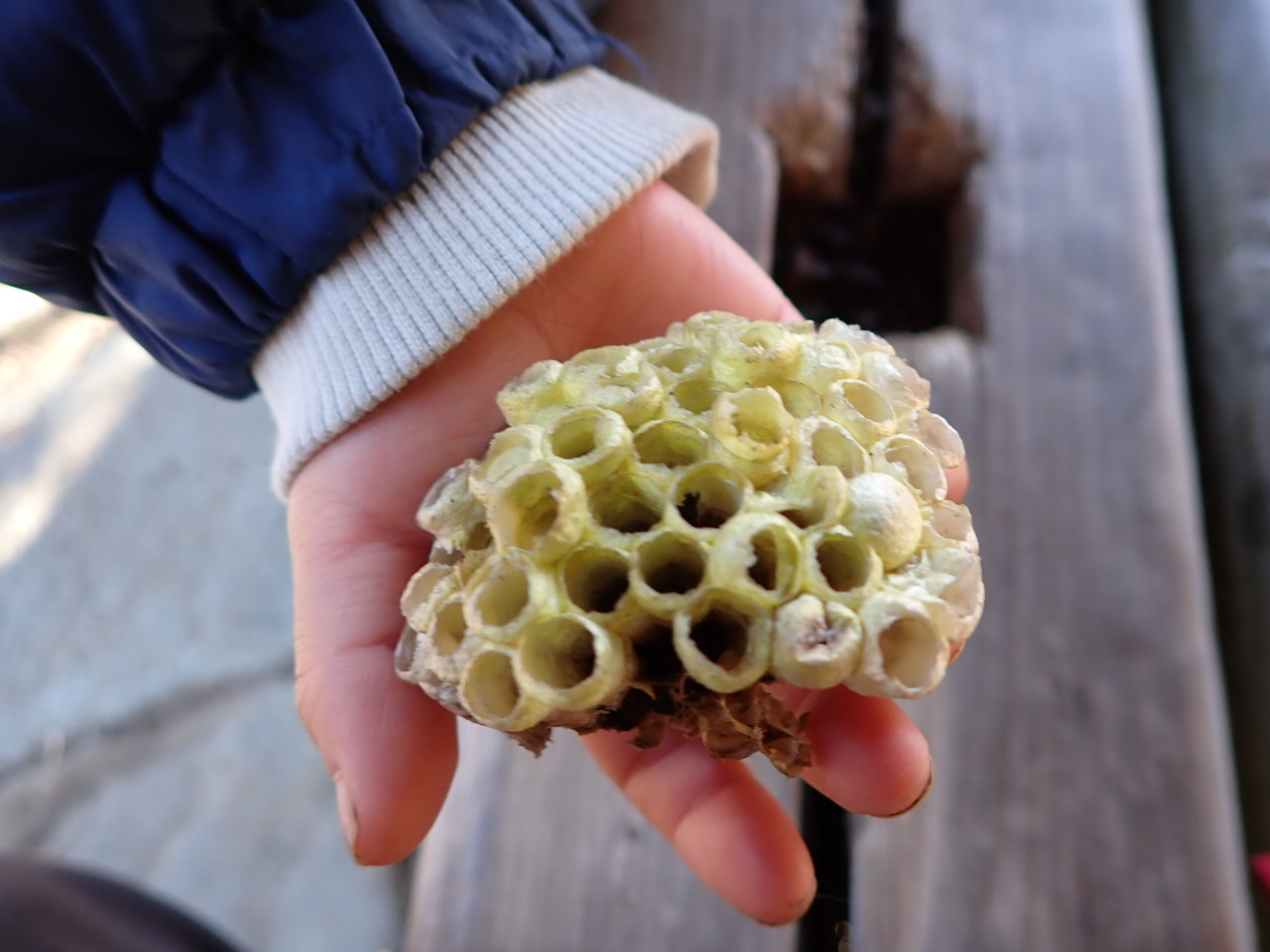 この巣に住んでいた女王バチはいい所見つけたでしょうか。今頃どこか暖かい所で眠っていたらいいです。